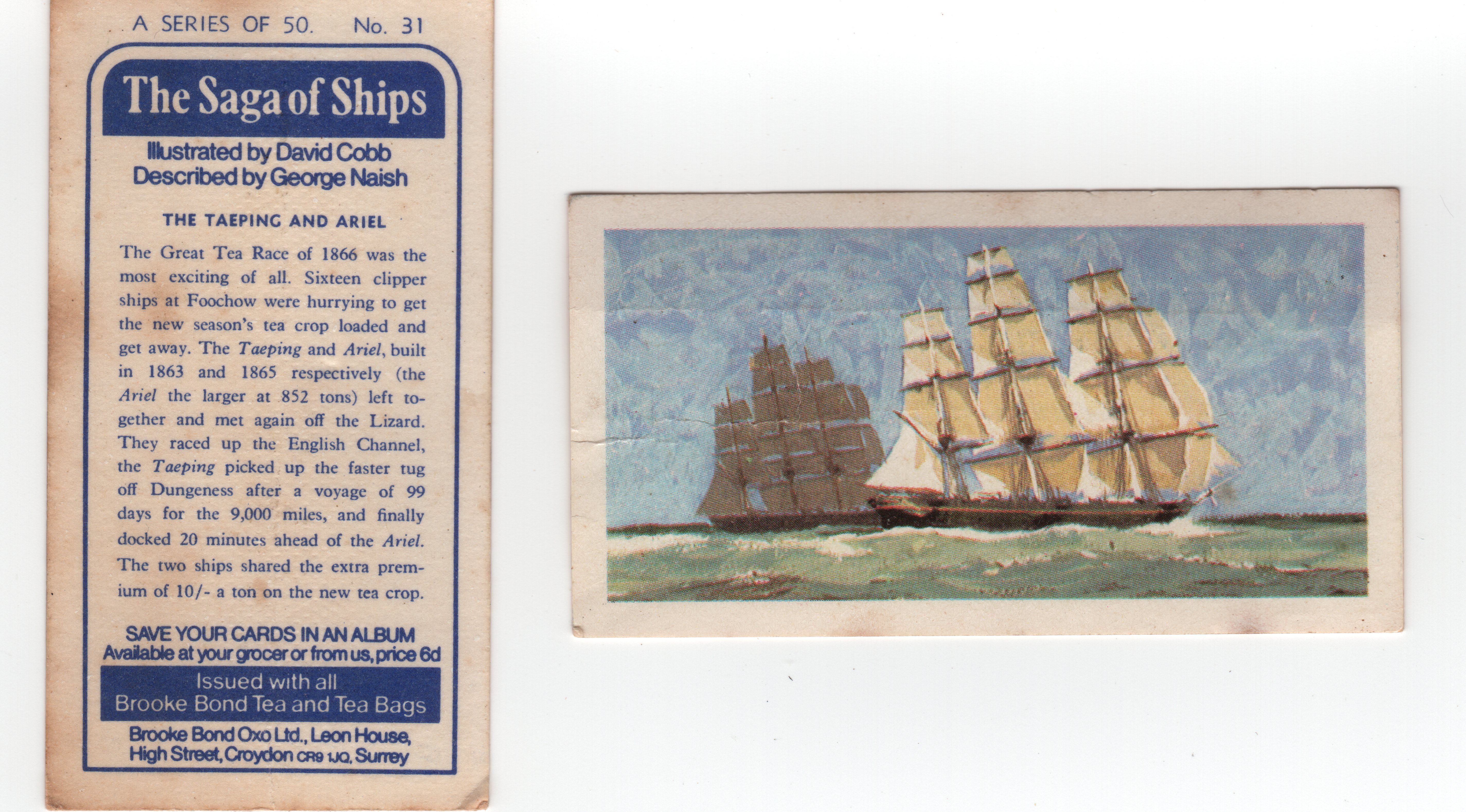 Three original copies of Look and Learn magazine, 1967, containing an article about tea clippers ‘The Romance of the Clippers’, which includes reference to Captain Donald MacKinnon, Heanish, who sailed the ‘Taeping’ to victory in the Great China Tea Race of 1866. Accession includes an enlarged photocopy of the article.