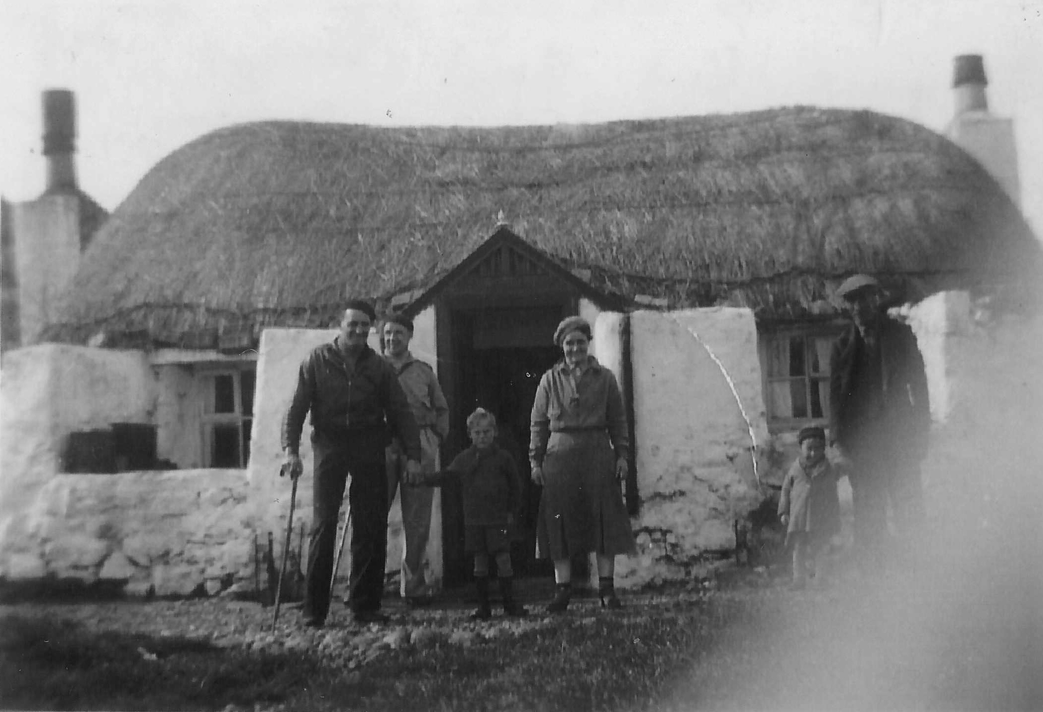 Tiree in the 1920s. L-R: Harry Johnston,Margaret Doig`s father; unknown; unknown; Harry`s wife, Margaret Pettigrew; unknown; unknown. Mary Flora MacKinnon of Rhum View married Jimmy Pettigrew, Margaret`s brother.
