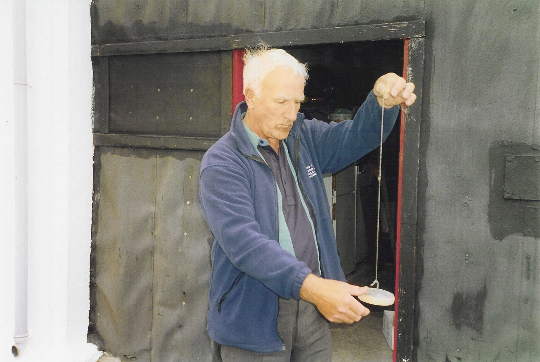 Donald Archie Brown of Balevullin is pictured spinning horsehair fishing line using a small weight. Joined together with smooth knots, the line was used for fishing with rods from a boat or short lengths were used to attach the hooks to the main line used for flounder fishing.