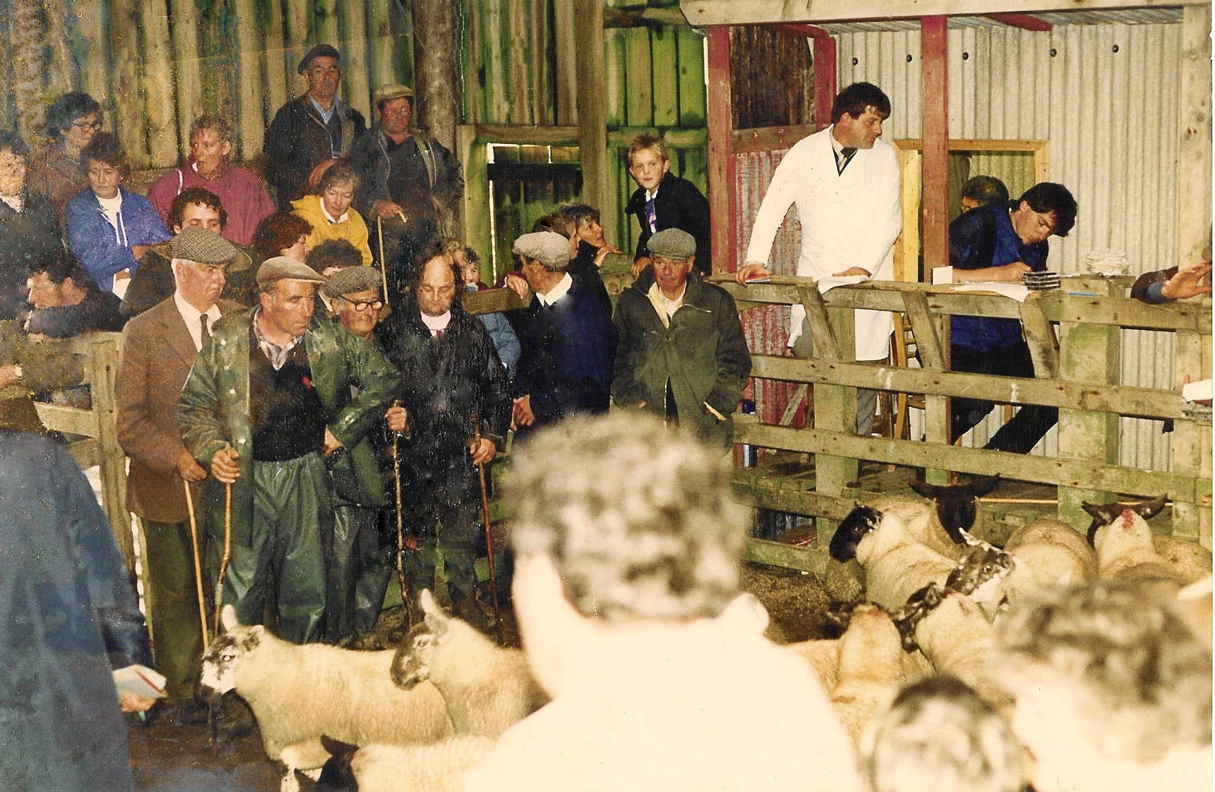 Lamb sale at the old sale ring at the Crossapol mart about 1986. (Original stored in filing cabinet 8 drawer 4)