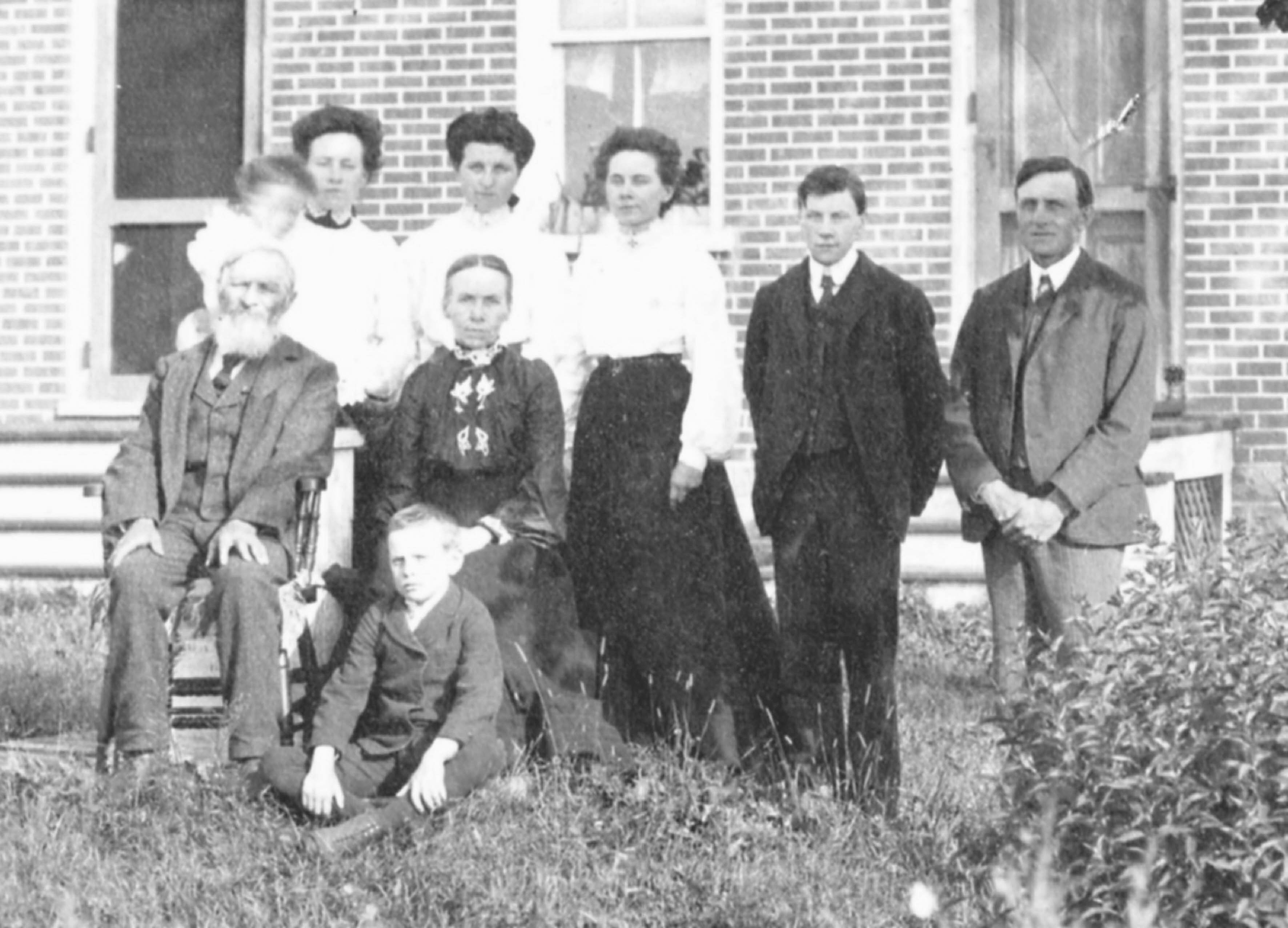 Black and white photograph of John MacPhadden with his family in Kenyon Township, Ontario in 1904.