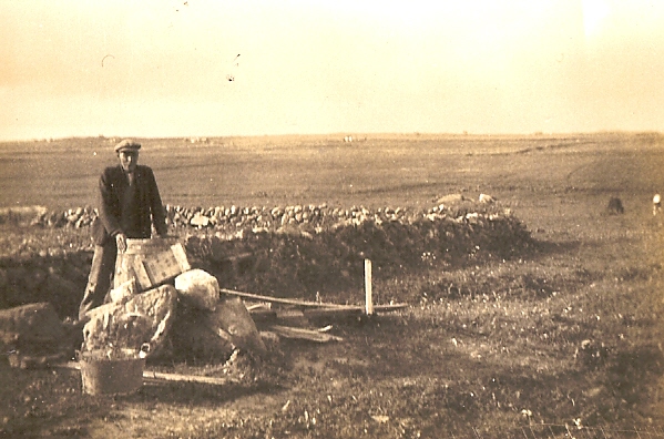 Photograph of Hugh MacNeil (?) working outside Croft View, Balephuil, around 1950.