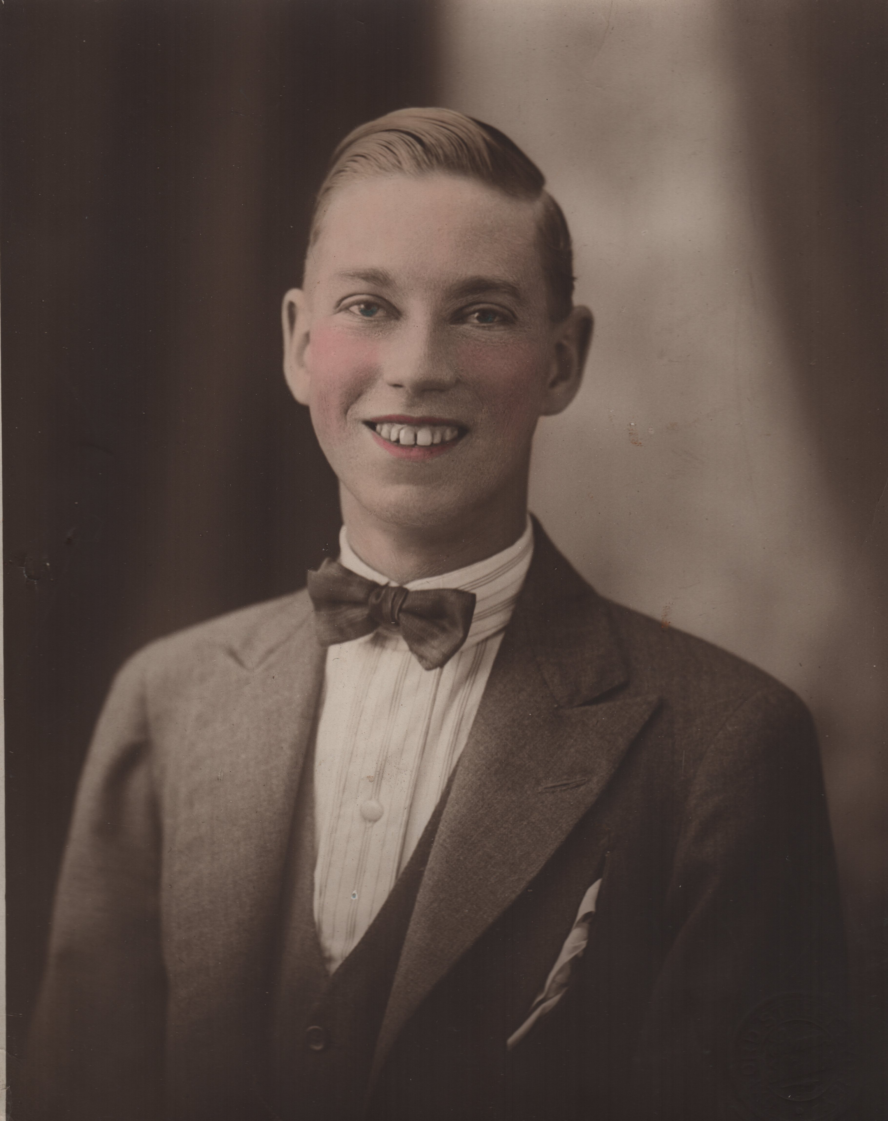 Studio portrait photograph of an unidentified young man from the MacDonald/Campbell/Brown family of Mannal, taken on the 4th February 1925. On the reverse is written “With kind regards to Auntie Annie from Archie”. From a collection from Mannal House.