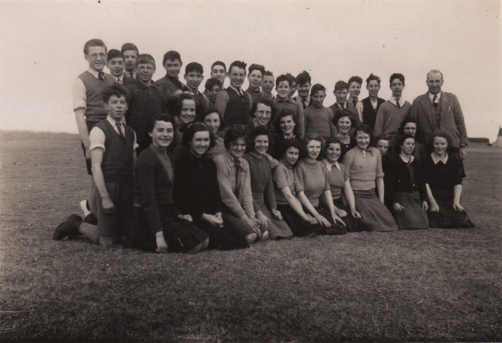 2017.35.5 Leave a ReplyBlack & white photograph of a group of 37 secondary pupils outside Cornaigmore School, with Mr MacIver of the mainland Gaelic Committee in around the 1930s.Object DetailsOther Number: X109