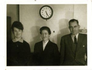 Flora Macleod, Mary Mackinnon and Angus Maclean at the bank.