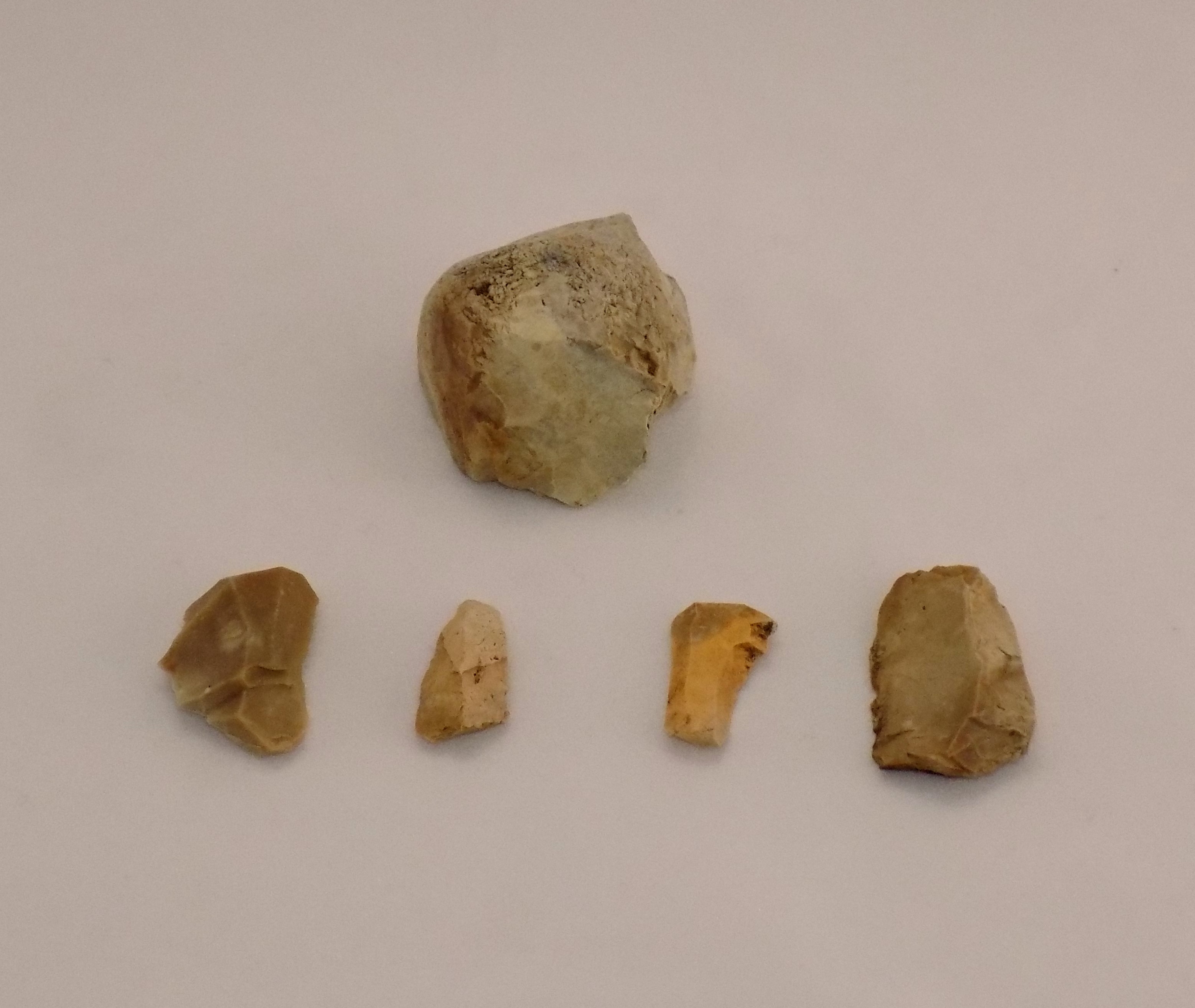 Collection of 8 flint chips found at an un-named archaelogical site on Tiree in the 1970s.