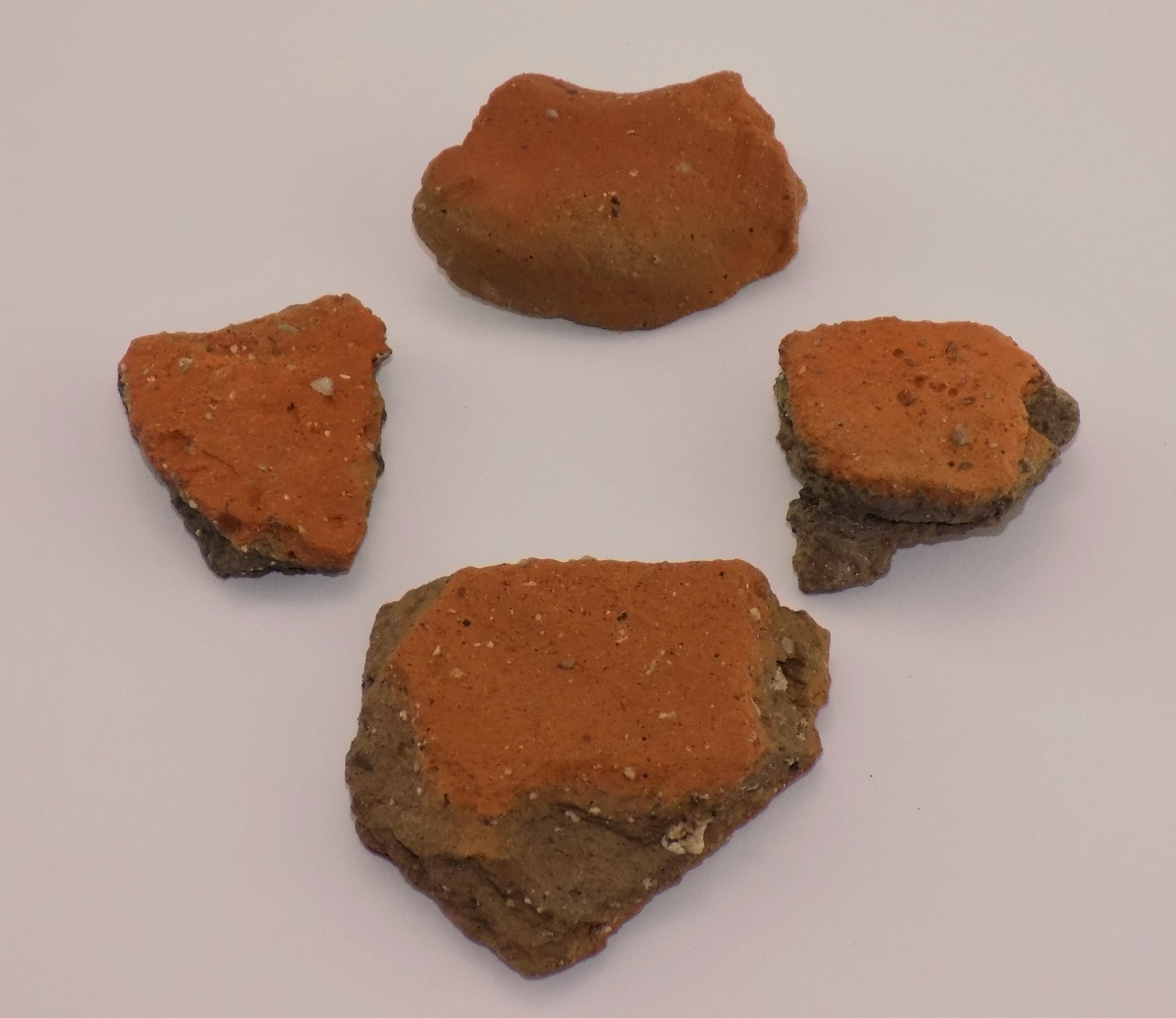 Four Iron Age pottery shards found on the surface of a sand dune in Balephuil towards Ceann a` Bharra on 9/4/2003 by Malcolm MacNeill of Glasgow who assisted in the excavation of Dun Mor Bhalla in the 1960s.