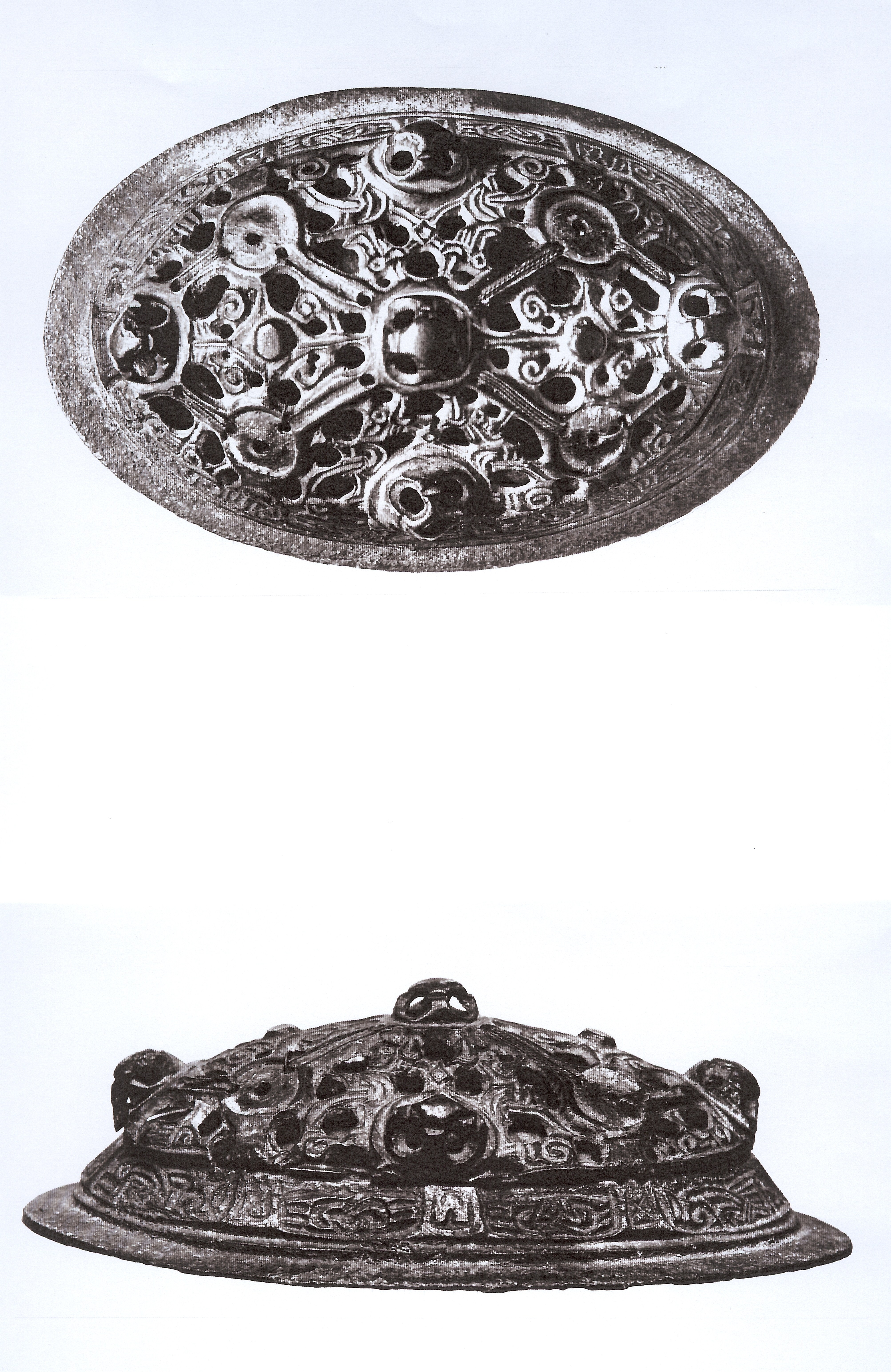 Photocopied photographs of a brooch found in a Viking burial site near Cornaigbeg.