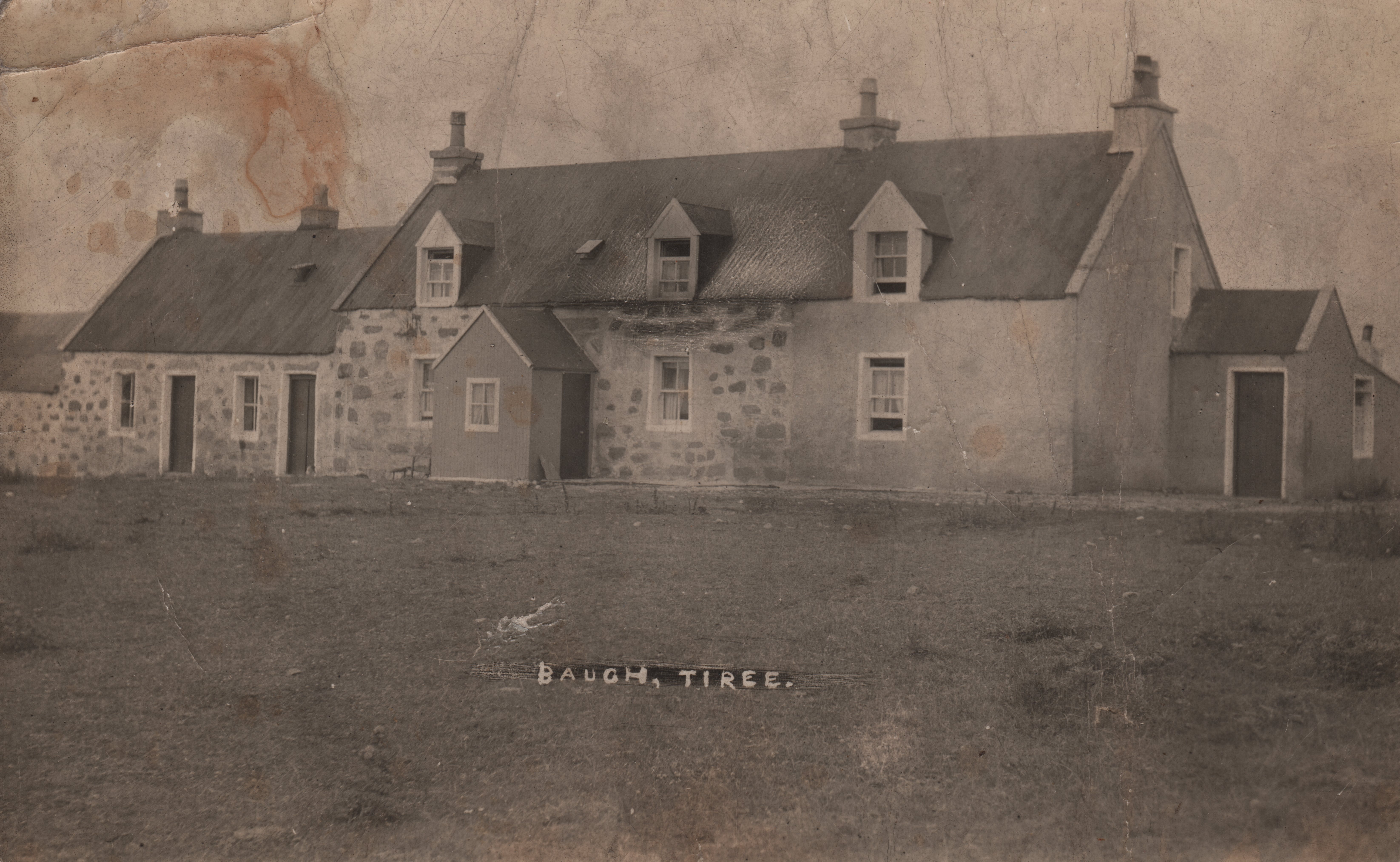 Card-mounted, black & white photograph across Crossapol Bay with Beinn Hough in the backround. Taken from An Àird, Tràigh Bhàigh, by well-known art photographer Andrew Swan Watson around 1910. Watson worked in photography from at least as early as 1884 until around 1930, had a studio in Edinburgh, was the President of the Edinburgh Professional Photographers Society, won several European awards, and was noted for his photographs of clouds. This landscape shot may be one of the earliest ever taken. Information about Watson and his studio on label on reverse.