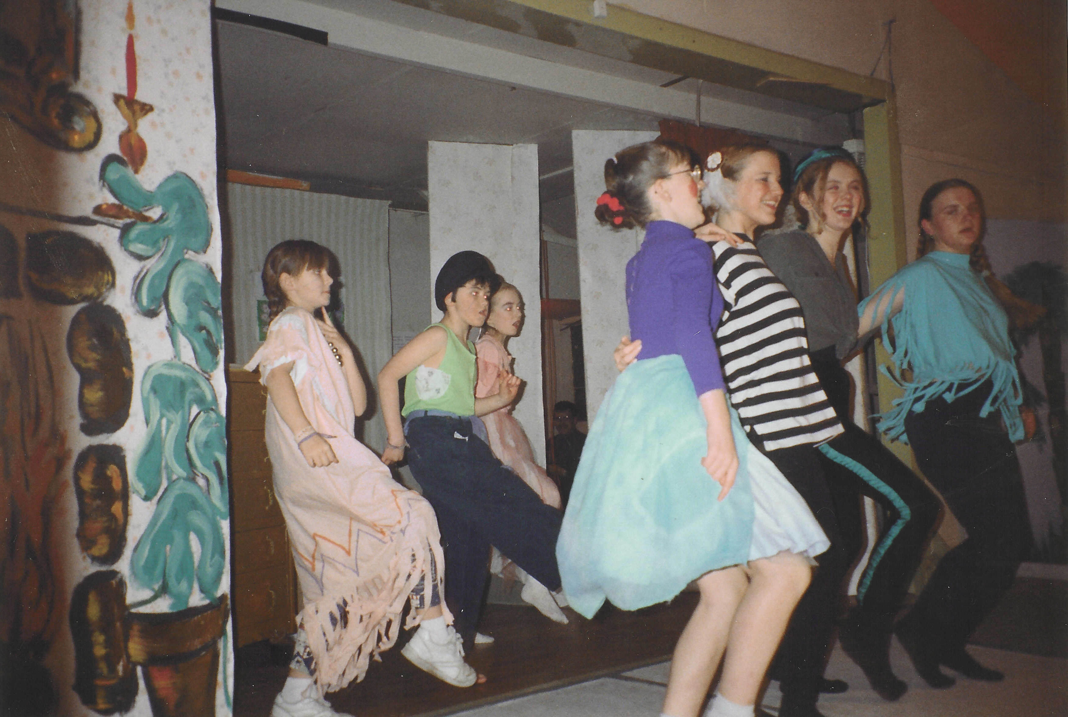 Feis concert in Crossapol Hall in 1988. On stage (L-R) Jessie Gray, Balemartine; Morven MacInnes, Ruaig; Ailig Hector MacDonald, Hynish, on the accordion; Niall MacKinnon, Balephetrish; Craig Smith, Crossapol; Mairi Munn, Crossapol; Sarah Holliday, Baugh.