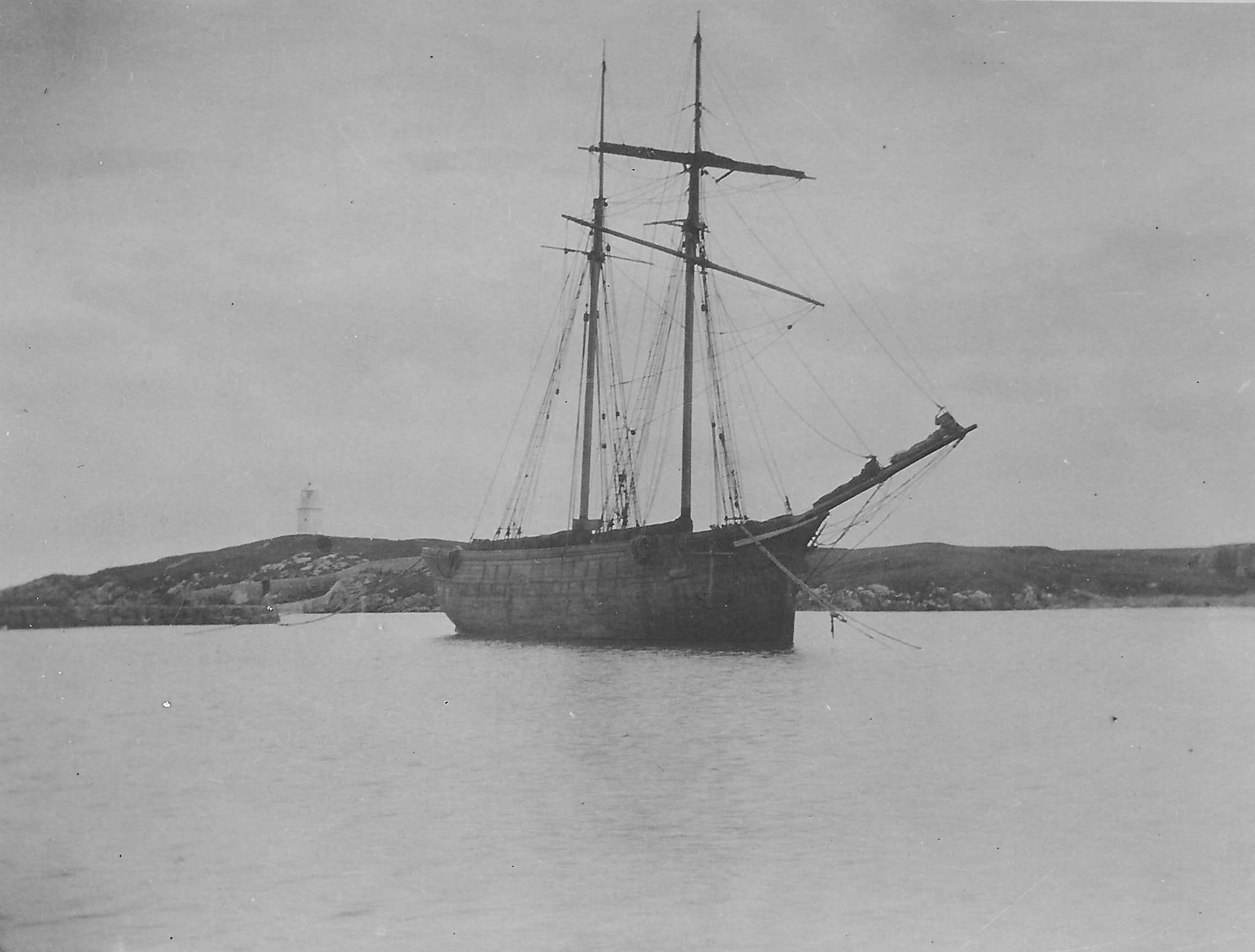 The Mary Stewart in Scarinish harbour with the lighthouse in the background, from a small photograph album from Silversands in Vaul titled 1927.