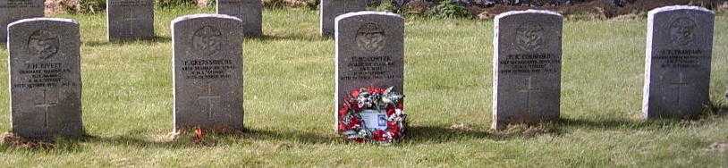 The graves of the sailors from H.M.S. Sturdy who were lost at Sandaig in October 1940. The wreath was handmade by Lt. Cdr. Michael J. Gibson RN RD (Rtd) whose father E. J. A. Gibson, Engineer Officer, was injured during the incident, and the photograph taken by Gordon Scott in September 2005.