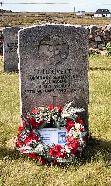 The grave at Soroby cemetery of seaman J.H. Rivett from H.M.S. Sturdy who was lost at Sandaig in October 1940, photographed by Gordon Scott in September 2005.