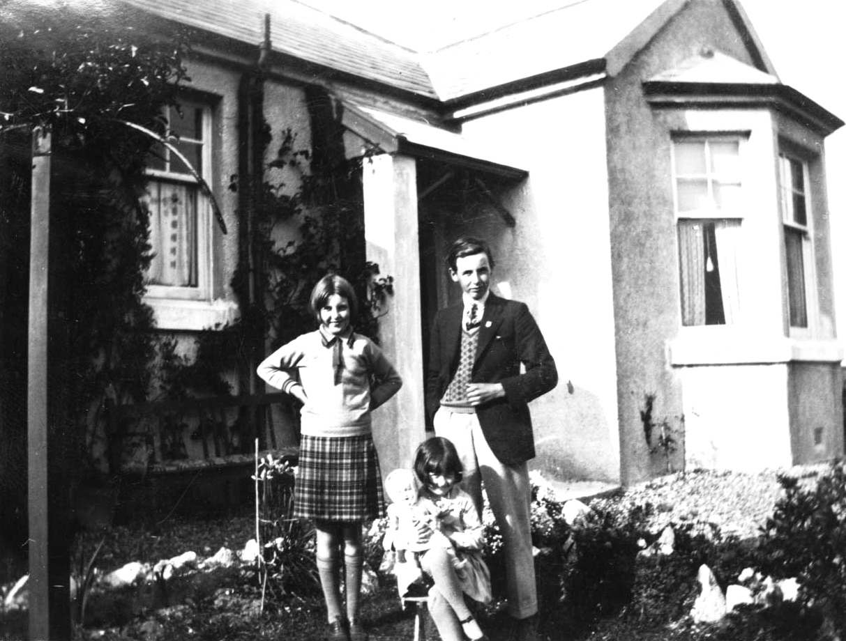 Black and white photograph of Neil MacFadyen of Kenovay, and Isobel and Morag Carmichael.
