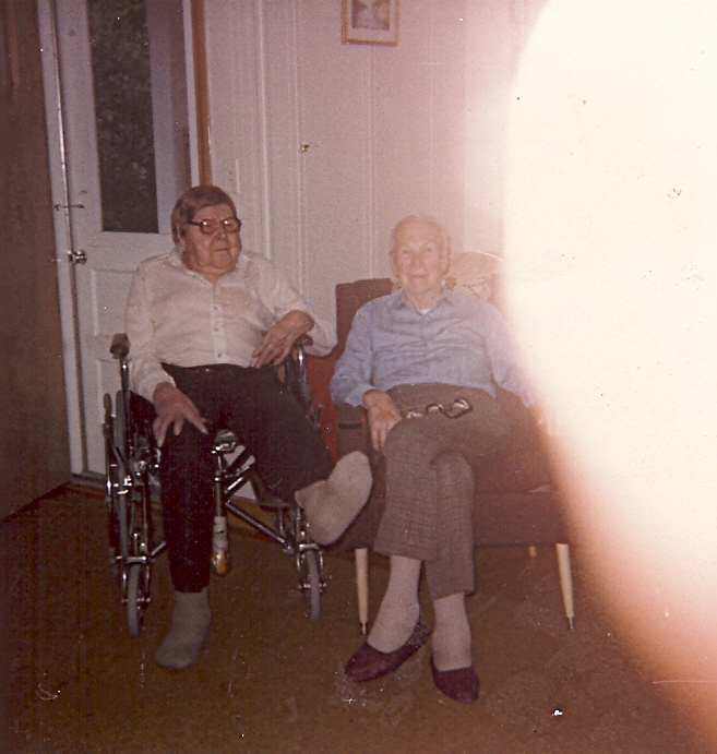 Colour photograph of Malcom MacPhail and unknown woman seated in the living room of `The Home`, in Canada on 25/07/1984. Relatives of the Kirkapol MacKinnon`s? (original stored in filing cabinet 9 drawer 4)